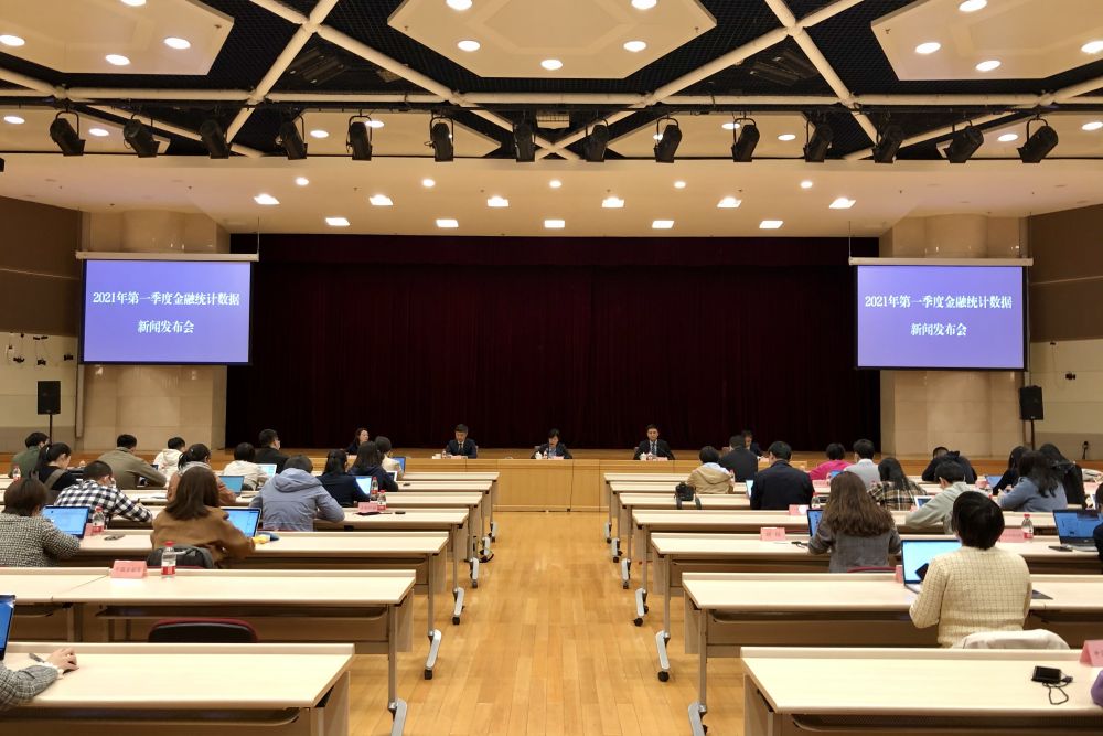 4月12日,人民银行举行2021年第一季度金融统计数据新闻发布会。(摄影 潘悦)