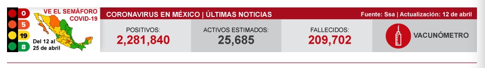 当地时间4月12日,墨西哥卫生部宣布,截至当天19时,墨西哥过去24小时新增新冠肺炎确诊病例1627例,累计确诊2281840例;新增死亡病例364例,累计死亡209702例。(总台记者 盛嘉迪 吕兴林)