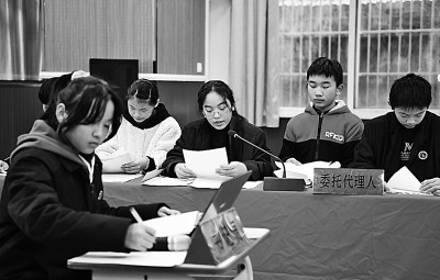 安徽省淮北市相山区青少年校外活动中心少年模拟法庭“开庭”。光明图片