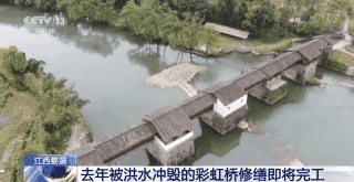 经过三个多月的抢救性维修,近日,江西婺源的古桥彩虹桥即将修缮完工。2020年7月8日,有着800多年历史的彩虹桥部分桥面曾被洪水冲毁,去年12月底修缮工作正式启动。