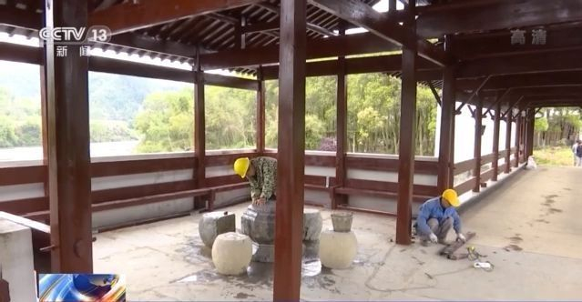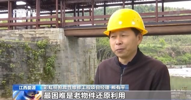 婺源县清华彩虹桥抢救性维修工程项目经理 熊有平:主体工程已完工,在维修过程中,最困难是老物件还原利用。