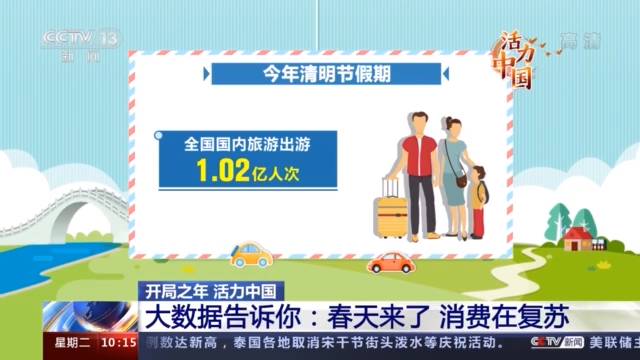文旅部发布的数据就显示,今年清明节假期,全国国内旅游出游1.02亿人次,同比增长144.6%,恢复到2019年同期的94.5%。国内旅游收入达到了271.68亿元,同比增长228.9%,恢复到疫前同期的56.7%。赏花踏青带出了旅游消费的热度。