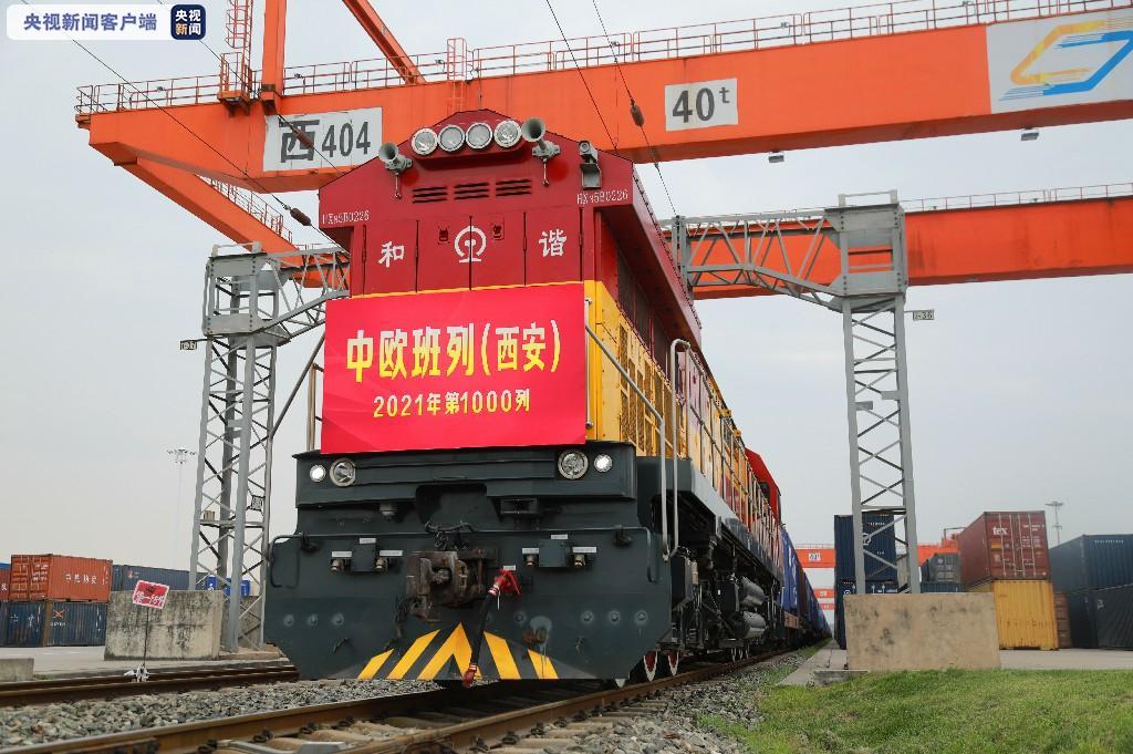 4月13日,满载着自行车、玩具、洗碗机等50车货品的X9041次中欧班列(西安),从中国铁路西安局集团有限公司西安国际港站驶出开往哈萨克斯坦,这是2021年陕西开行的第1000列中欧班列。截至4月12日,西安国际港站运送货物41286车,同比去年增长26.76%,重箱率100%,稳居全路第一。