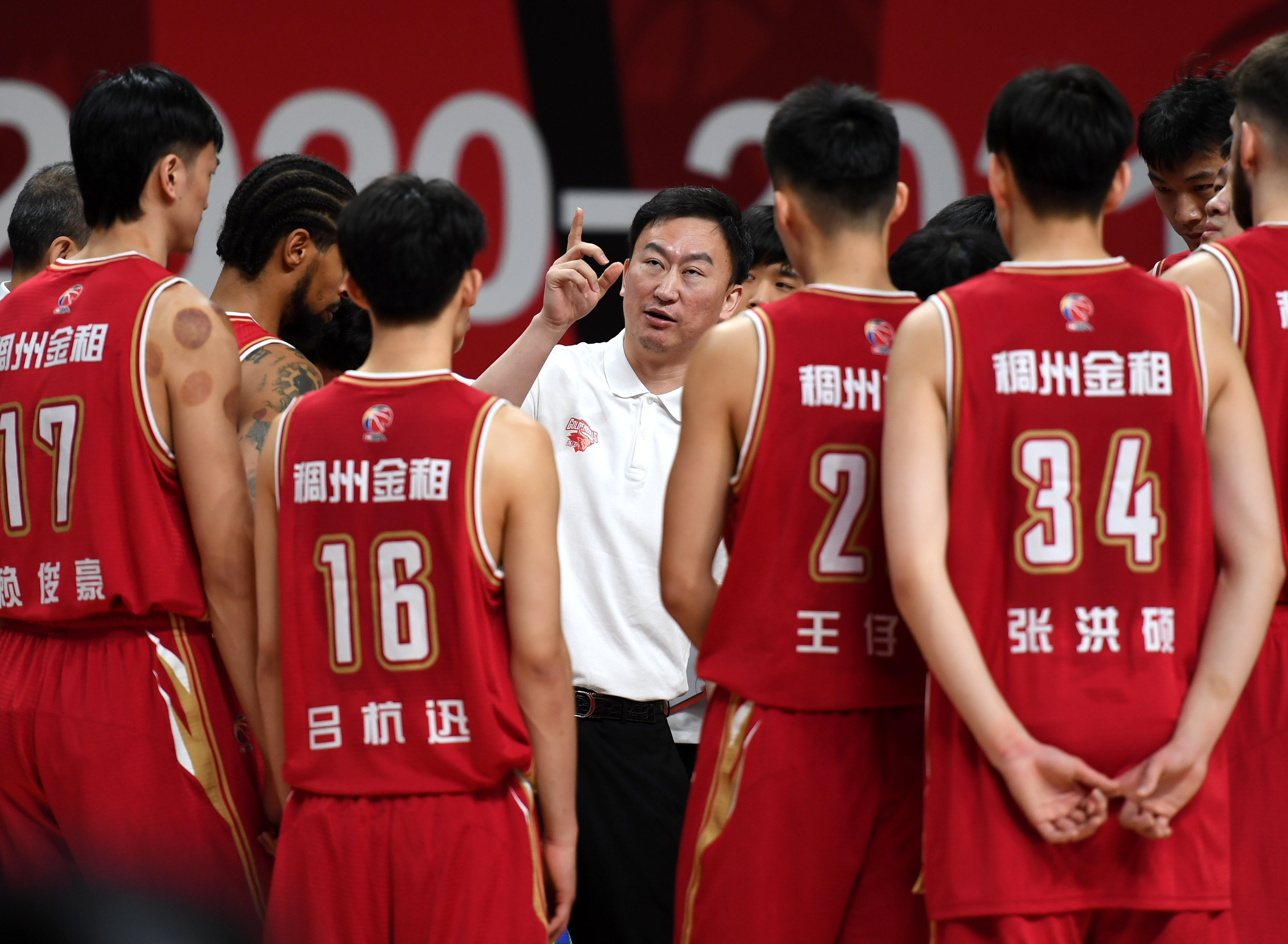 资料图:浙江稠州队主教练刘维伟(中)在指导球员。新华社记者李紫恒摄