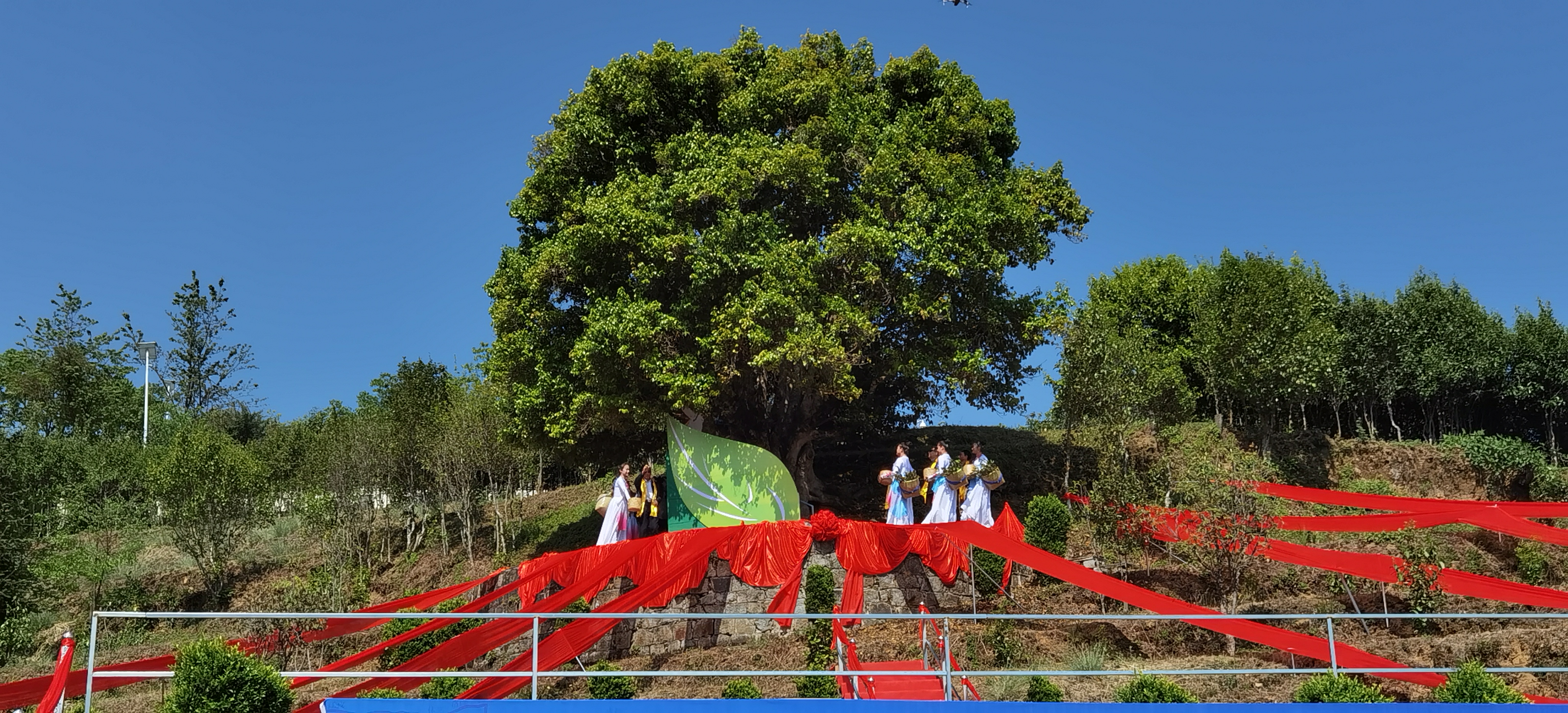 一场盛大的开茶大典12日在云南省临沧市凤庆县小湾镇锦秀村启幕,“锦秀茶尊”古茶树开始了五年一次的保护性采摘。