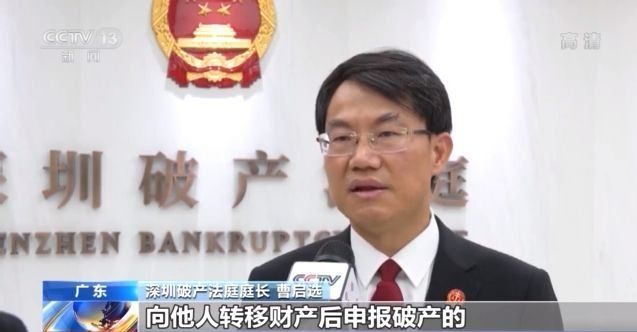 深圳破产法庭庭长 曹启选:目前我们也看到部分申请中,申请人的负债是由奢侈消费、过度投机、过度举债引起的,向他人转移财产后申报破产的。希望蒙混过关或者故意欺诈的,这些债务是不能得到条例规定的破产程序的保护的。