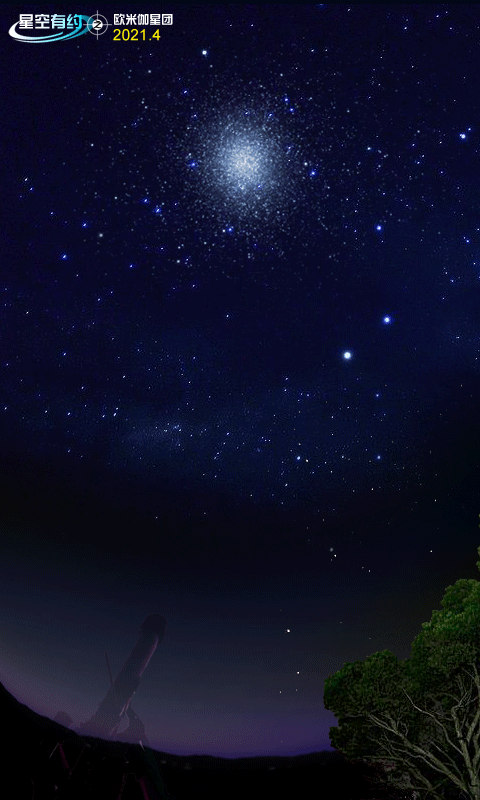 赵之珩提醒,4月中下旬,是观测欧米伽星团的最佳时期,其中,4月15日这天子夜时分,该星团会运行至中天位置,此时它的地平高度最高,地理位置越向南,观测条件会越好。视力好的朋友,可尝试用肉眼观测。如果借助双筒望远镜或者小型天文望远镜,可以相对更容易地找到它。