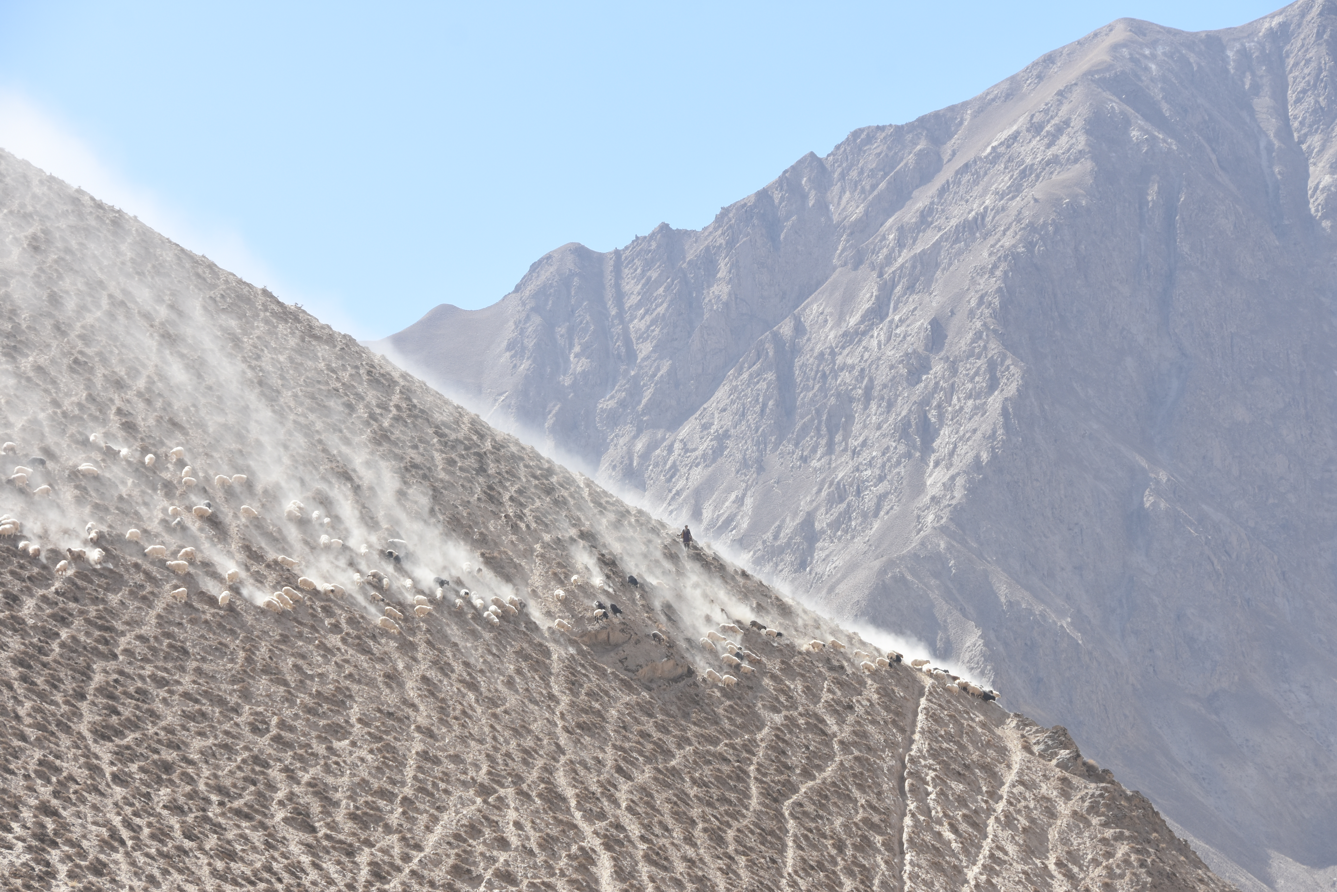 新疆和田县喀让古塔格村藏在昆仑山深处,有近40万亩大草场,靠近玉龙喀什河河源,自冰川融化的雪水就沿着村边的河谷向北流淌。村里1000多个村民,养了约1.5万只羊和1500多头牛。