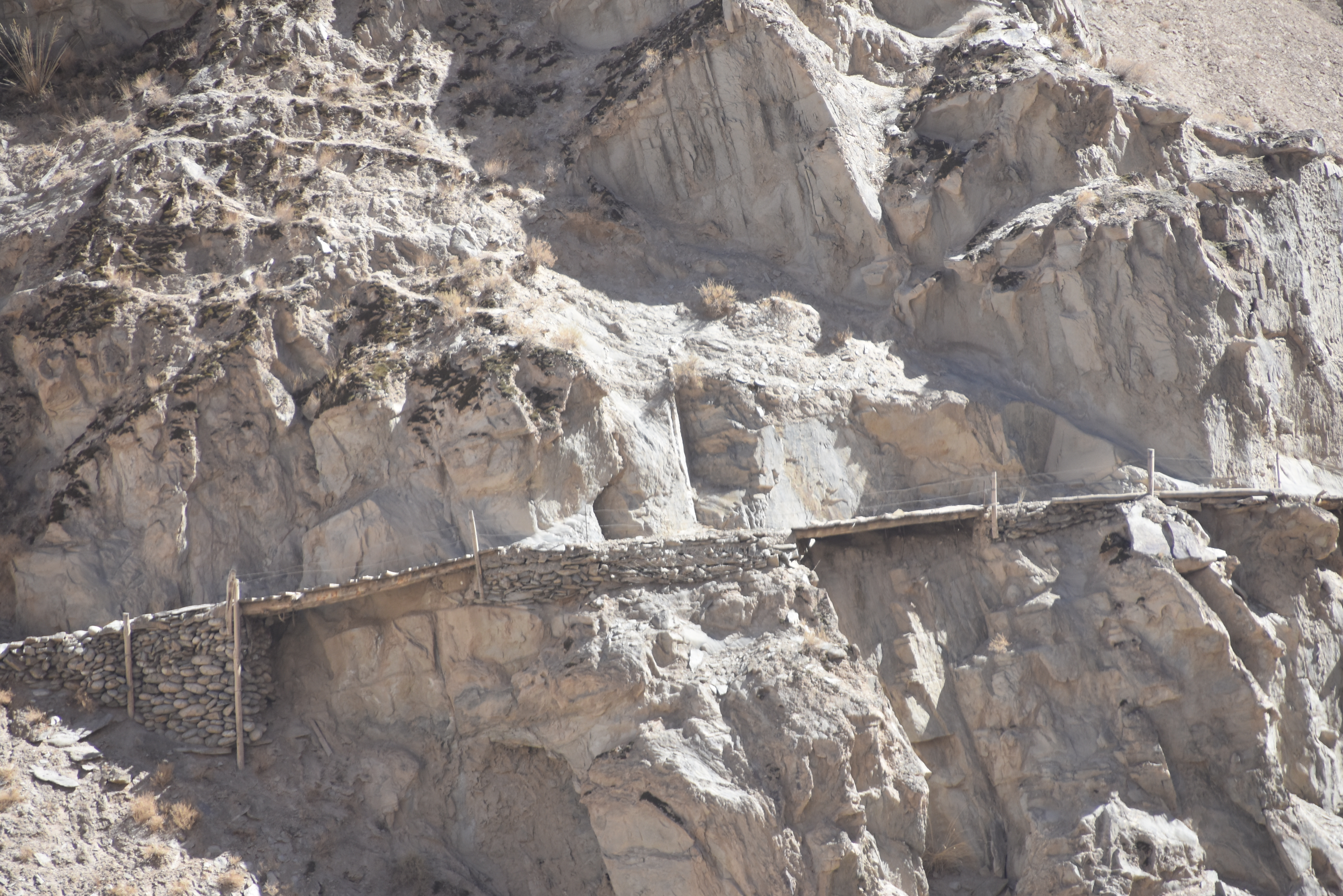 2017年之前,喀让古塔格村通向外界的道路只有一条土路。这条勉强称之为路的小径,又细又长,环绕在山腰之间。有的路段,土路难以为继,勇敢的村民就用石块、木板砌出一小段木栈道。