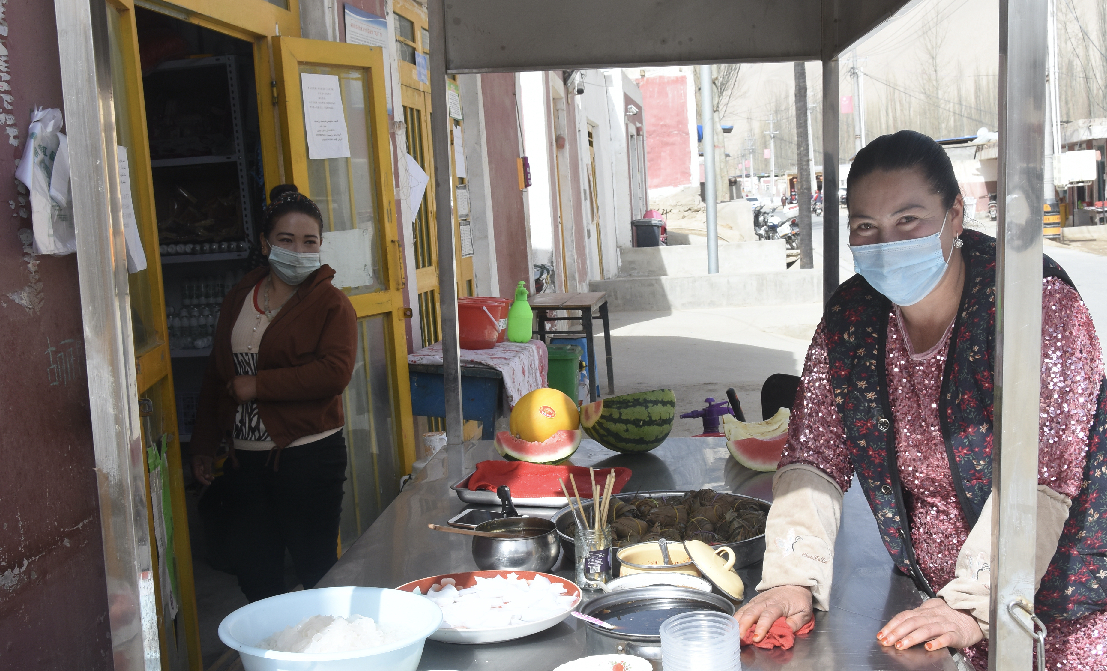 这是喀让古塔格村一家售卖水果、粽子等小吃的店铺。 新华社记者 张晓龙 摄