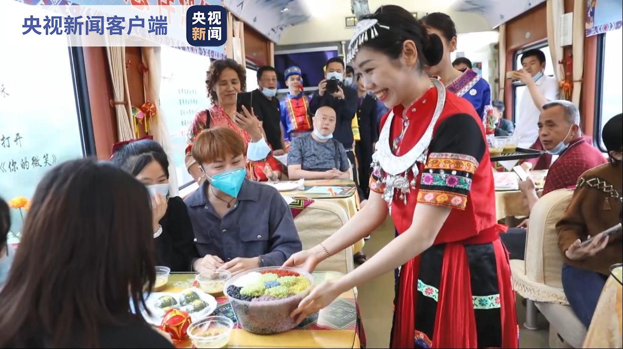 为了营造节日氛围,广西铁路部门在南宁至北京、成都的3趟旅客列车上举办了“刘三姐号”民族文化主题列车活动。通过民俗文化互动问答等形式,向旅客展示民族服饰、壮族歌舞之美。同时为“三月三”乘车的旅客赠送油茶、艾叶粑、五色糯米饭等壮乡特色美食,带领旅客进行山歌大合唱,让旅客感受壮乡民族风情和节日氛围。(总台央视记者 傅琦恩 沈庆 何柏霖 宋斯丽)