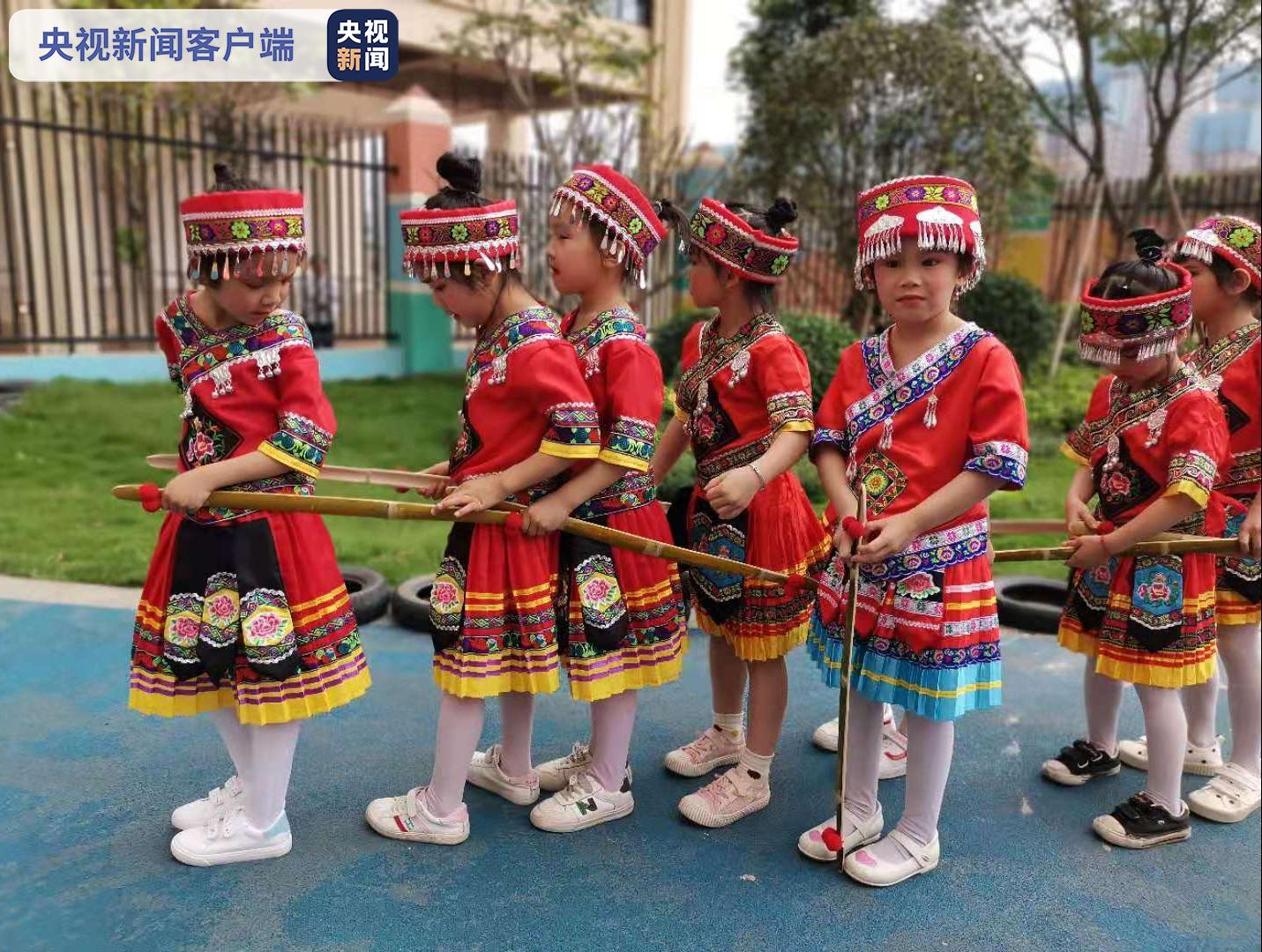 在广西柳州市鹿寨县第一幼儿园城南园里,幼儿园的小朋友、老师和部分家长代表身着民族服装,手拉手载歌载舞一起欢庆三月三,通过跳竹竿舞、圆圈舞、抛绣球、做香包、品油茶、斗鸡蛋等精彩纷呈的节目,让家长和孩子们亲身参与体验壮民俗风情,增进亲子关系。广西柳州市鹿寨县第一幼儿园城南园黄予桐小朋友表示很开心:“今天我和妈妈参加活动,特别特别的开心,玩了斗蛋、抛绣球等活动,我觉得特别有意思。”