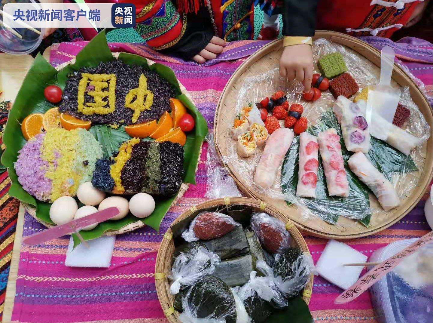 农历三月初二,南宁市良庆区第四实验幼儿园玉象分园充满了民族氛围,老师们把铜鼓、竹箩、小背篓等各种壮族用品展示出来,师生们唱起山歌、跳起民族舞蹈,共同品尝壮家五色糯米饭、青团、春卷、马蹄糕等美食。让孩子们加深对壮族民俗文化的了解。“希望孩子们可以感受、了解到壮族风俗特色美食、特色活动,民族传统文化的传承要从娃娃抓起!”广西南宁市良庆区第四实验幼儿园玉象分园小班组的小韦老师说。