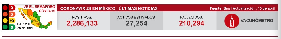 当地时间4月13日,墨西哥卫生部宣布,截止到4月13日晚7点,墨西哥全国累计新冠肺炎确诊病例2286133例,较前一天新增了4293例。墨西哥全国累计死亡病例210294例,较前一天新增592例。(总台记者 盛嘉迪 吕兴林)