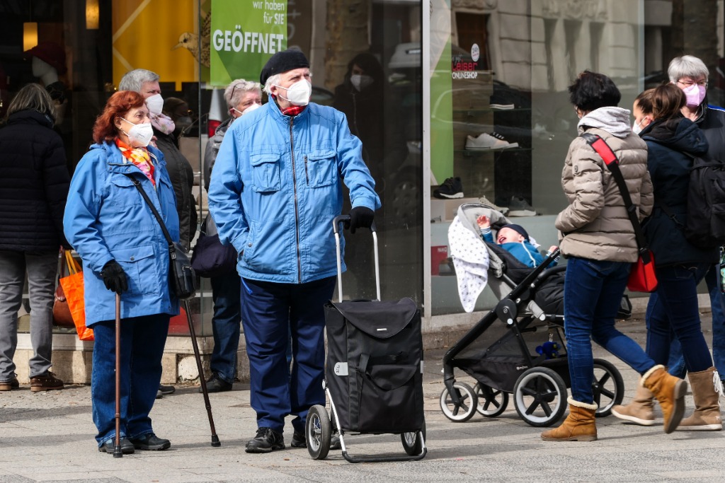 4月12日,在德国首都柏林,戴口罩的行人从街头走过。(新华社发,斯特凡·蔡茨摄)