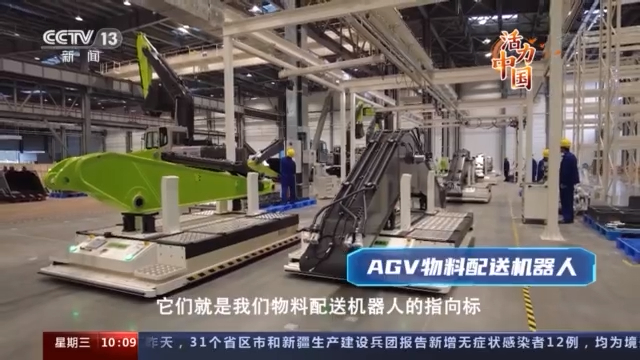 我们可以看到,在车间的地面上有许多的二维码,它们就是我们物料配送机器人的指向标。通过后台程序的设定,它可以准确地告知我们每一台物料配送机器人,配送到哪个工位和站点。在整个中挖装备车间,我们有100多台这样的物料配送机器人,小到一颗螺丝钉,大到一个动臂抖杆,这样几吨级的物料,它们可以及时、准确、全自动化地配送物料,别提我们员工有多高兴了。