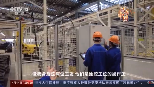 给大家介绍了这么多的机器人,是不是有个疑问,机器人把我们工人的活都干了,那我们工人做什么呢?其实我们不必担心,像我身后这两位工友,他们是涂胶工位的操作工。过去我们是靠人工涂胶作业,现在我们不仅学会了操作涂胶机器人,而且还懂得了机器人的原理,知道了日常故障的排除和诊断。为了达到这个目的,我们经过了多次的培训和无数次的调试,我们经常和机器人泡在一起,忙到深夜12点。