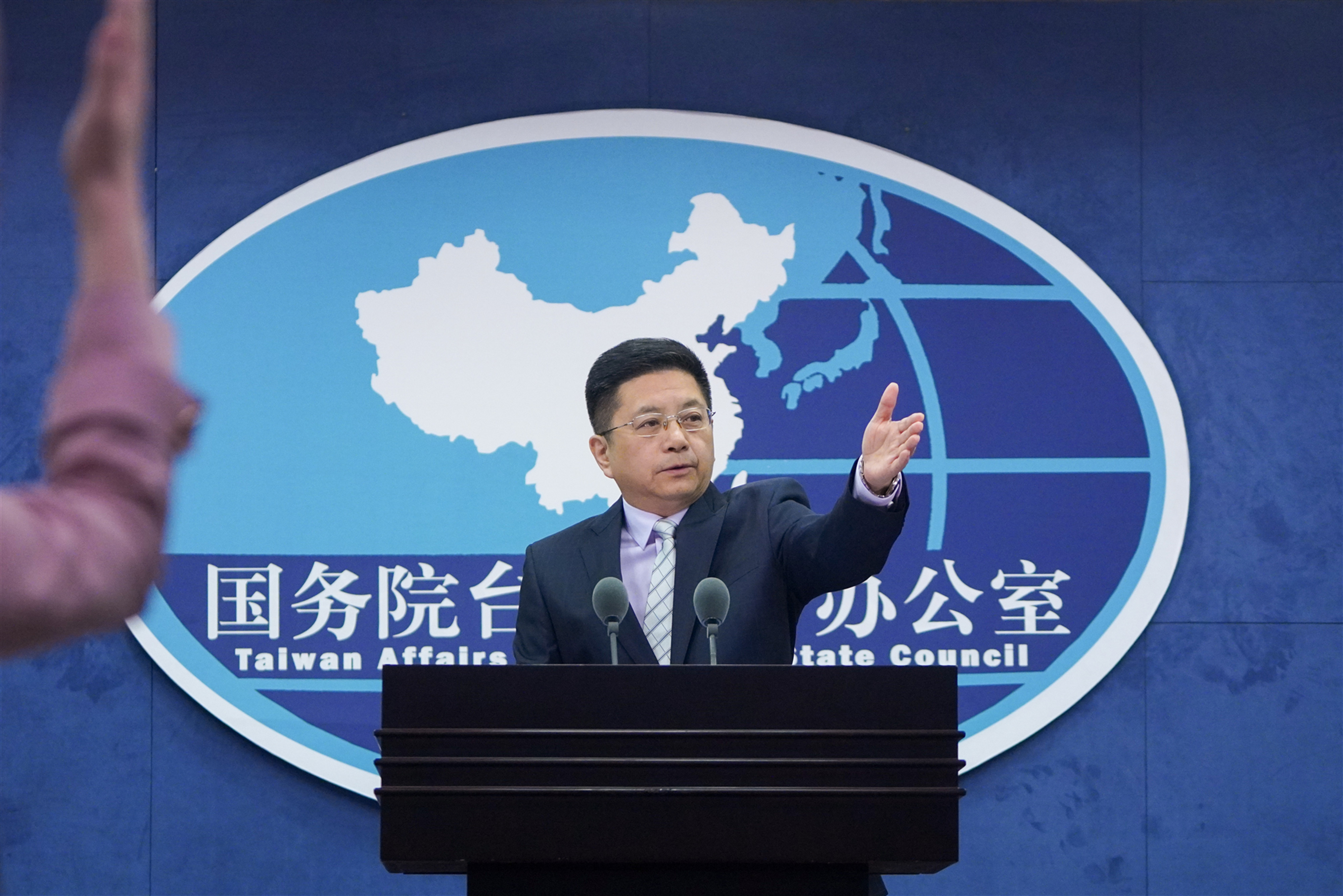 4月14日,国台办发言人马晓光在例行新闻发布会上邀请记者提问。新华社记者 陈晔华 摄