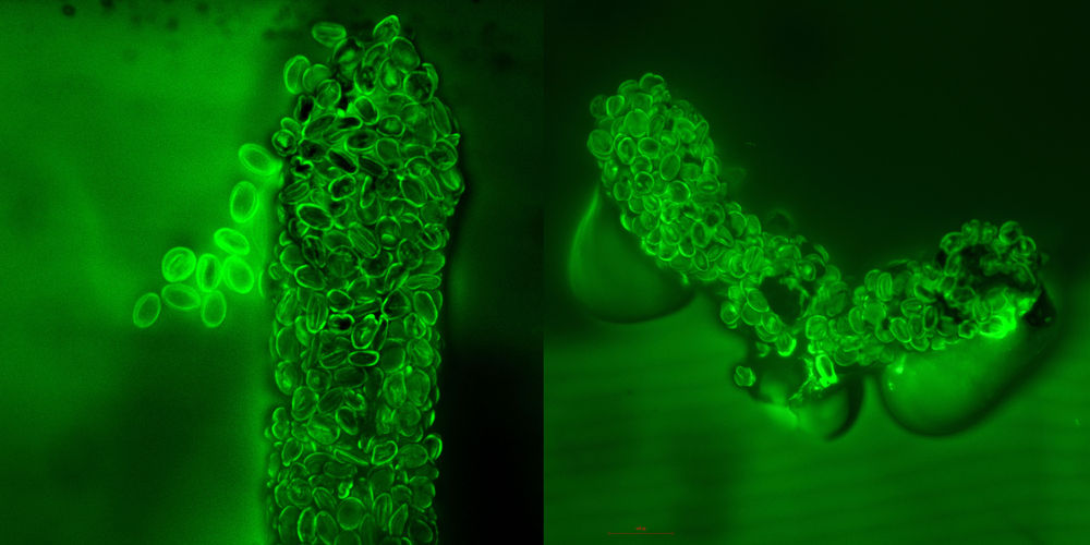 (两枚昆虫粪便化石在激光共聚焦显微镜下的图像。中国科学院南京地质古生物研究所供图。)