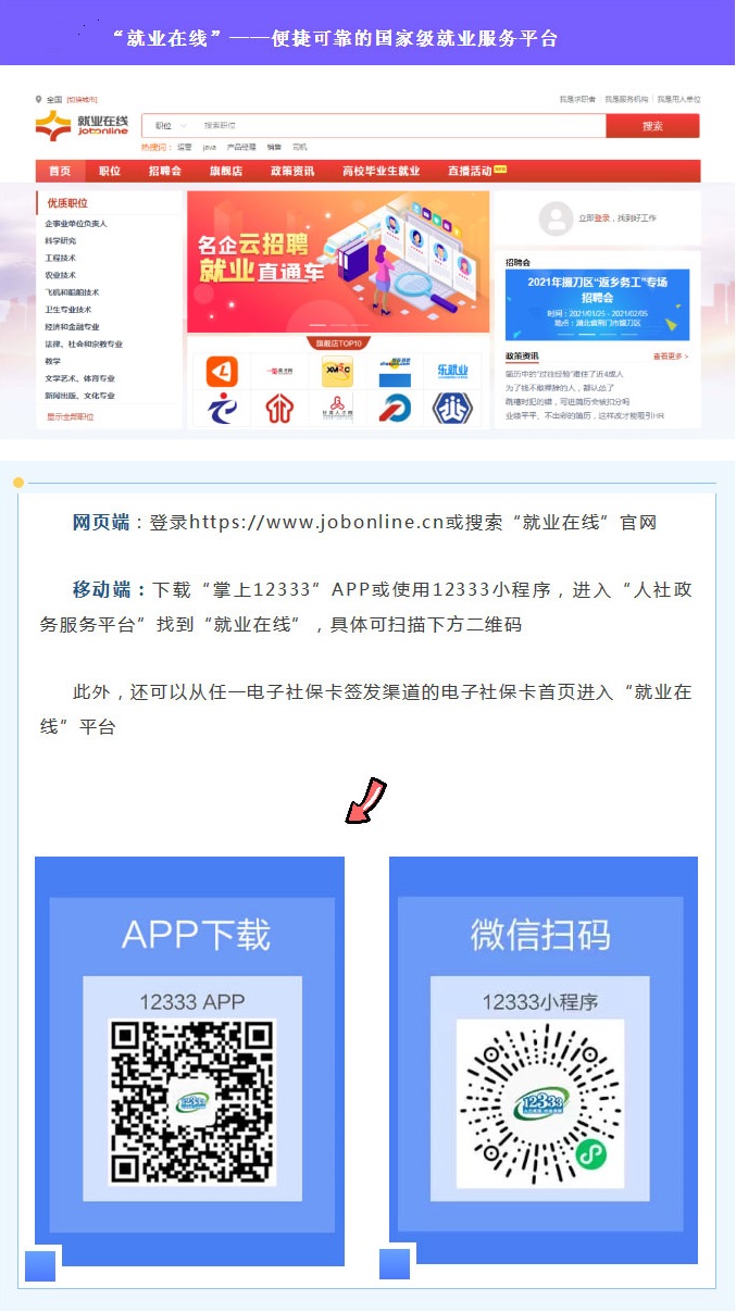 活动期间,人力资源社会保障部还将在中国公共招聘网(www.job.mohrss.gov.cn)开设“2021年全国民营企业招聘月”网络招聘主会场,同时在就业在线、24365校园招聘服务(https://job.ncss.cn/student/jobfair/joint.html)、工会就业服务网上平台(微信小程序:工E就业)、全联人才在线等发布各类招聘信息。