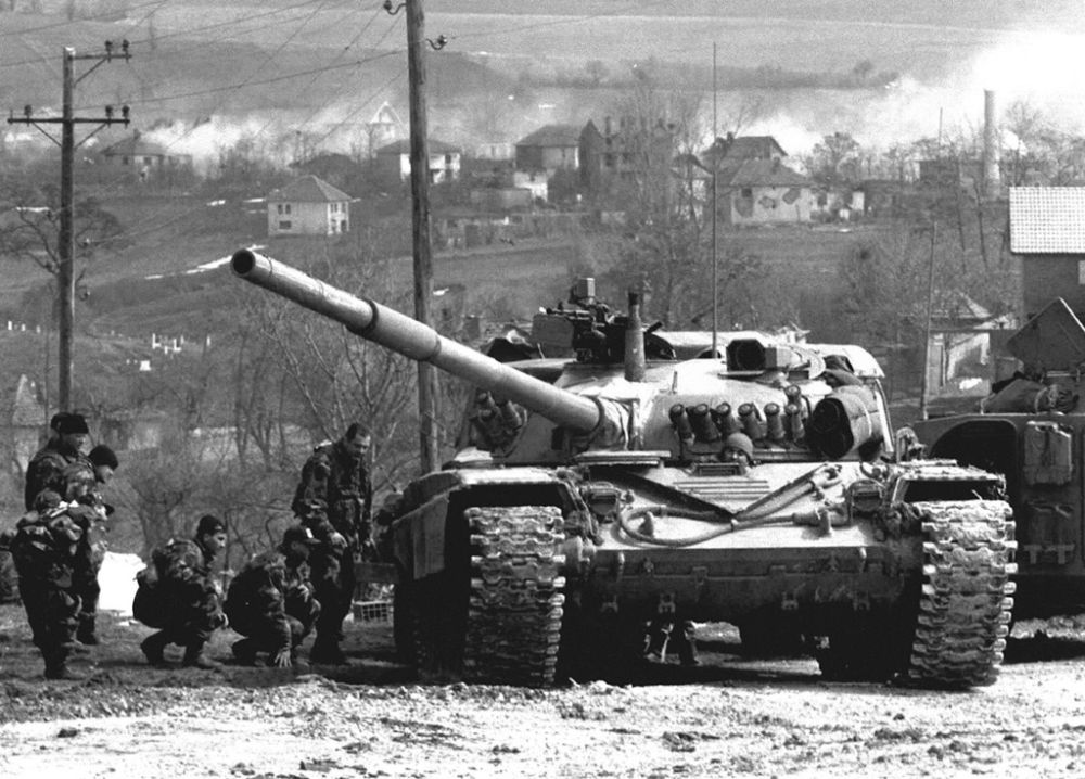1999年3月24日,以美国为首的北约向南斯拉夫联盟共和国发动大规模空袭,武力干涉科索沃危机。这是南联盟军队的一辆坦克当天在科索沃省德雷尼察地区待命。(新华社发)