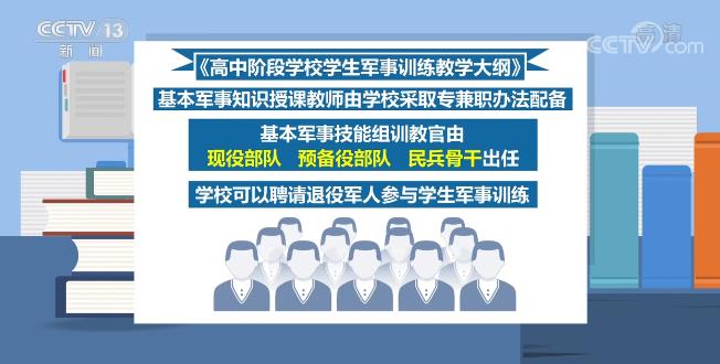 同时,《大纲》还明确,基本军事知识授课教师由学校采取专兼职办法配备,基本军事技能组训教官由现役部队、预备役部队、民兵骨干出任,学校可以聘请退役军人参与学生军事训练。