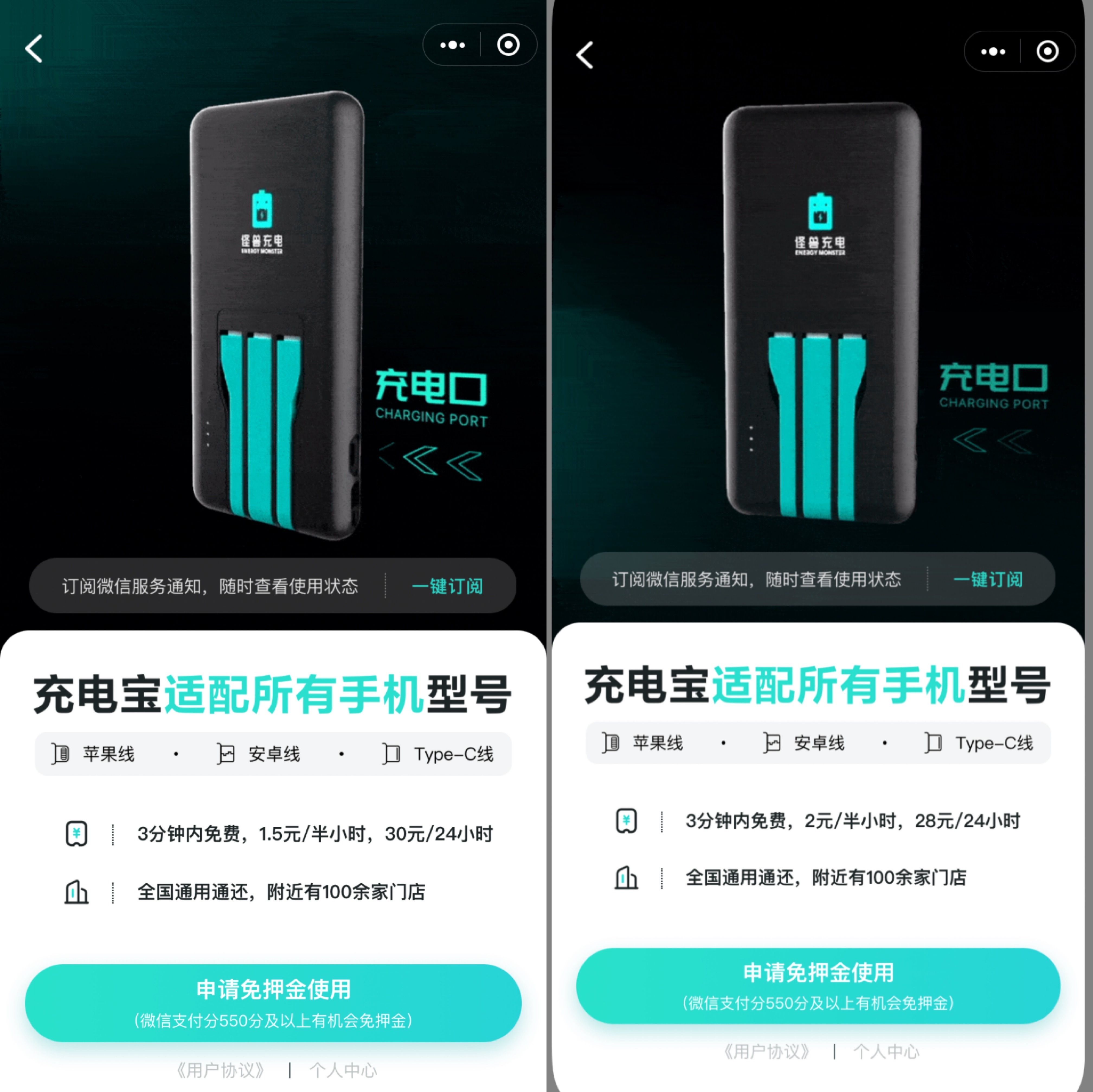 同一品牌的共享充电宝在不同场景收费标准不一样