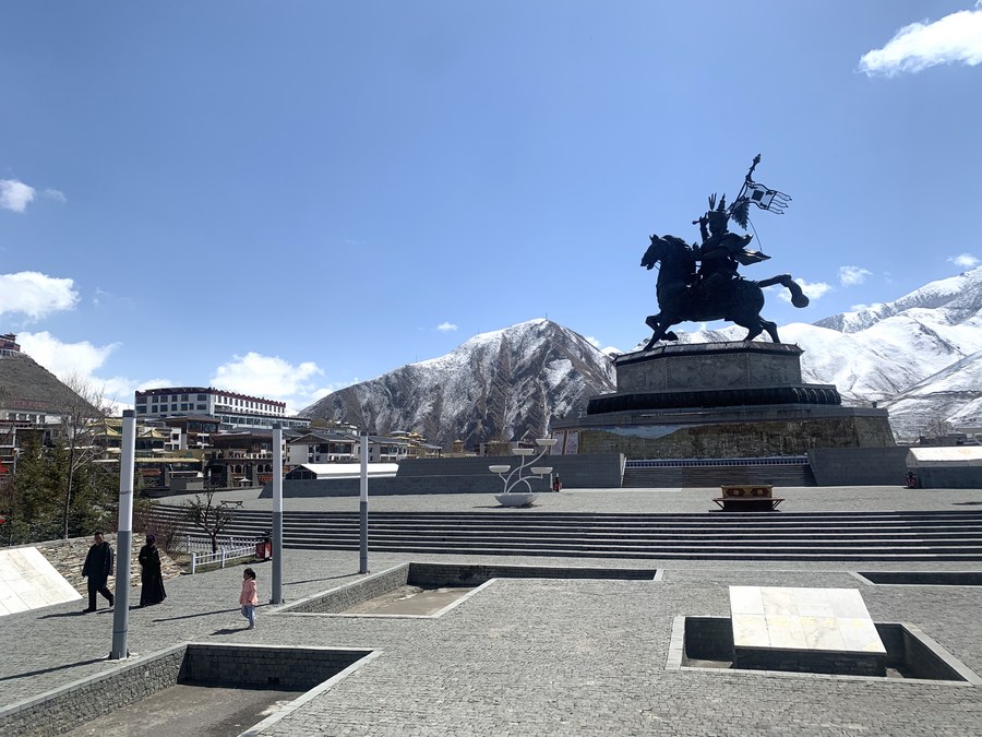 图为位于玉树市中心的格萨尔王广场。(2021年4月14日摄)新华社记者 李琳海 摄