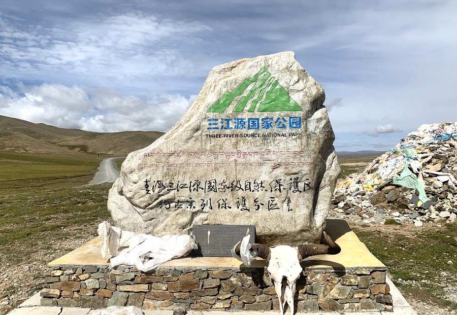 这是位于玉树州曲麻莱县境内的青海三江源国家级自然保护区约古宗列保护分区纪念碑。(2020年8月27日摄)新华社记者 李琳海 摄