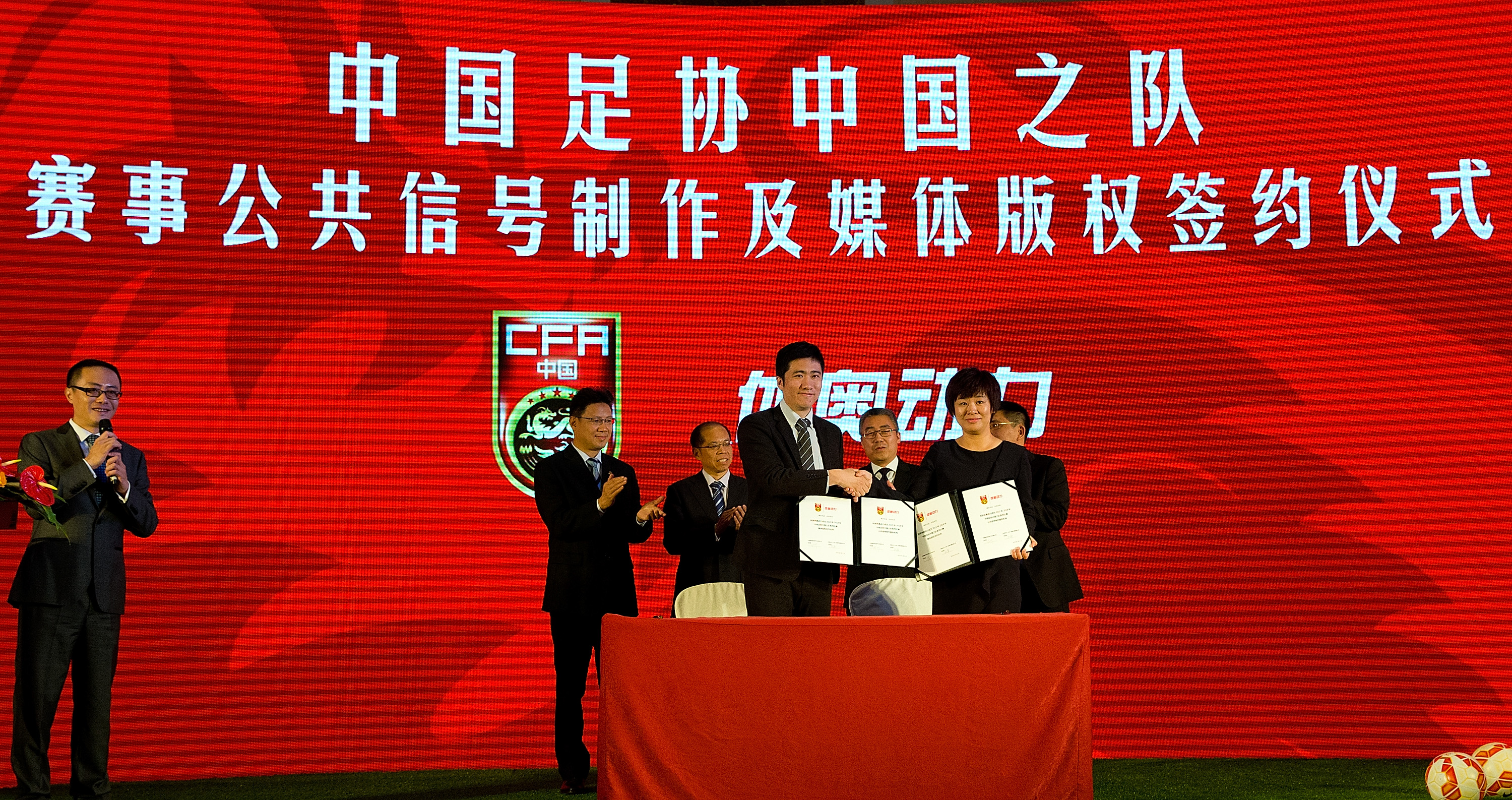 2015年5月11日,中国足协与体奥动力北京体育传播有限公司就中国之队系列比赛公共信号制作和媒体版权合作在北京举行签约仪式。新华社记者曹灿摄