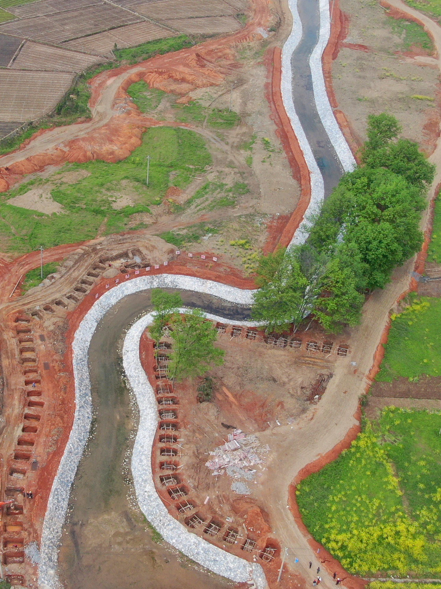 站在江西省德安县林泉乡工程现场,记者将无人机升到三百米高空,看到了一个与一年前完全不同的水美乡村画面:狭窄不畅的河道,已经变得开阔顺畅,塌坡严重的两岸建成了新的生态型护坡护岸,沿河村民免去了洪涝袭扰,河道不远处新建的一座污水处理站已经发挥作用,河流水质不再受污水直排影响。