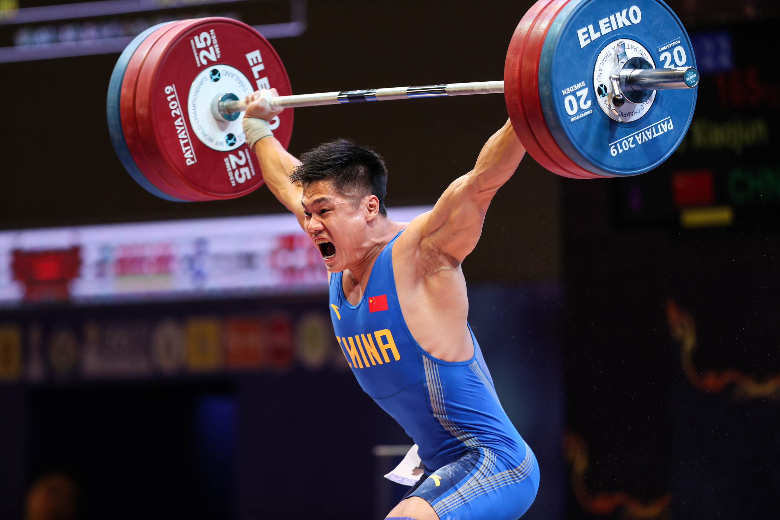 资料图:2019世界举重锦标赛男子81公斤级比赛中,中国选手吕小军以抓举171公斤、挺举207公斤和总成绩378公斤包揽三枚金牌,同时创造了该级别挺举和总成绩两项新世界纪录。新华社记者张可任摄