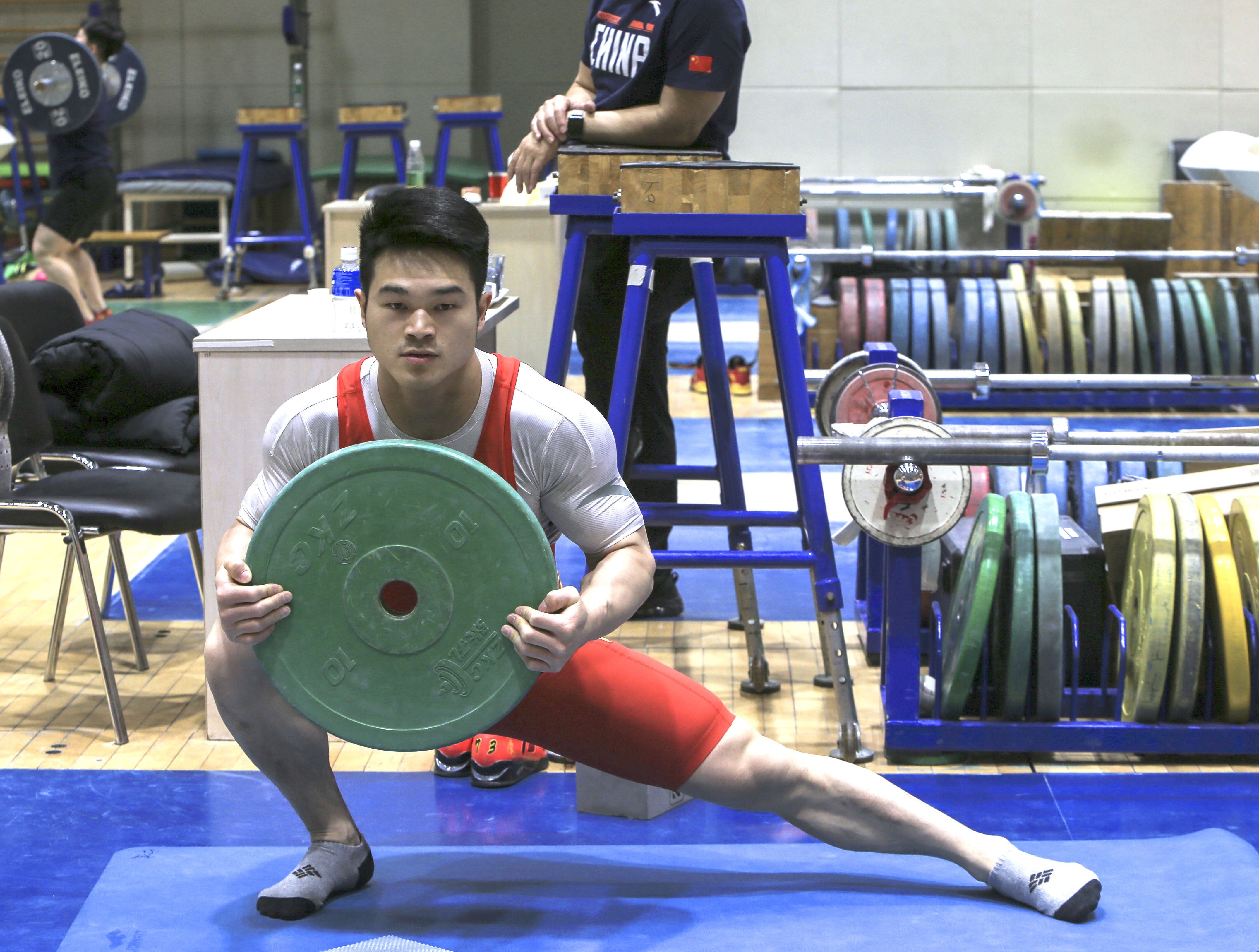 2020年1月17日,举重国家队举行媒体公开课,石智勇在训练中。新华社发(彭子洋摄)
