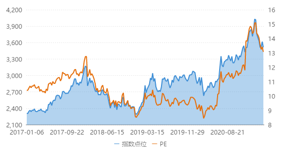 上证50指数历史点位及市盈率(TTM)表现(截至2021年4月14日)