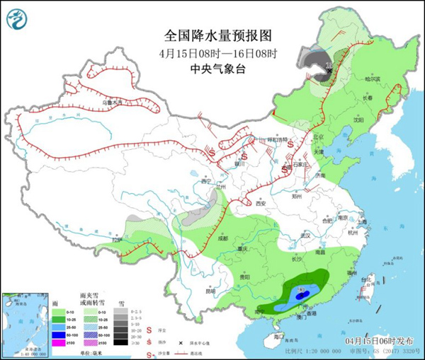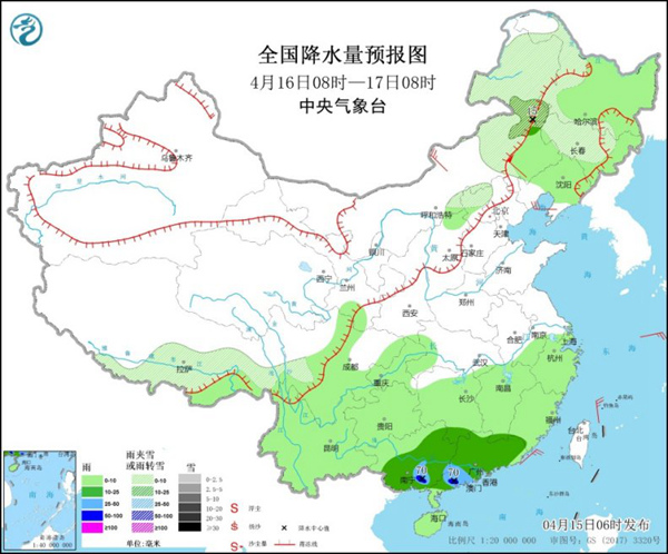 “全能型”冷空气来袭!预计今明天(4月15日至16日)华北、东北、黄淮等地气温将下降4℃至8℃,并且伴有大风,阵风可达8~10级。同时,沙尘、雨雪也将部分地区“现身”。在南方,强降雨带逐渐南落,广西、广东等地部分地区有暴雨。