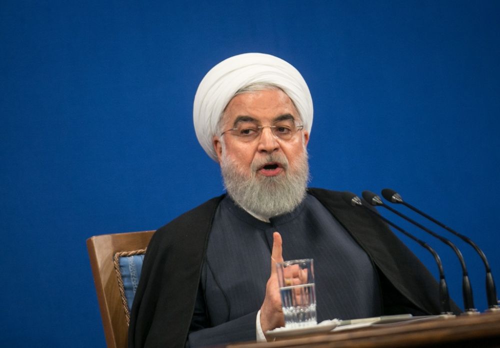 2019年10月14日,伊朗总统鲁哈尼在德黑兰出席新闻发布会。(新华社发,艾哈迈德摄)