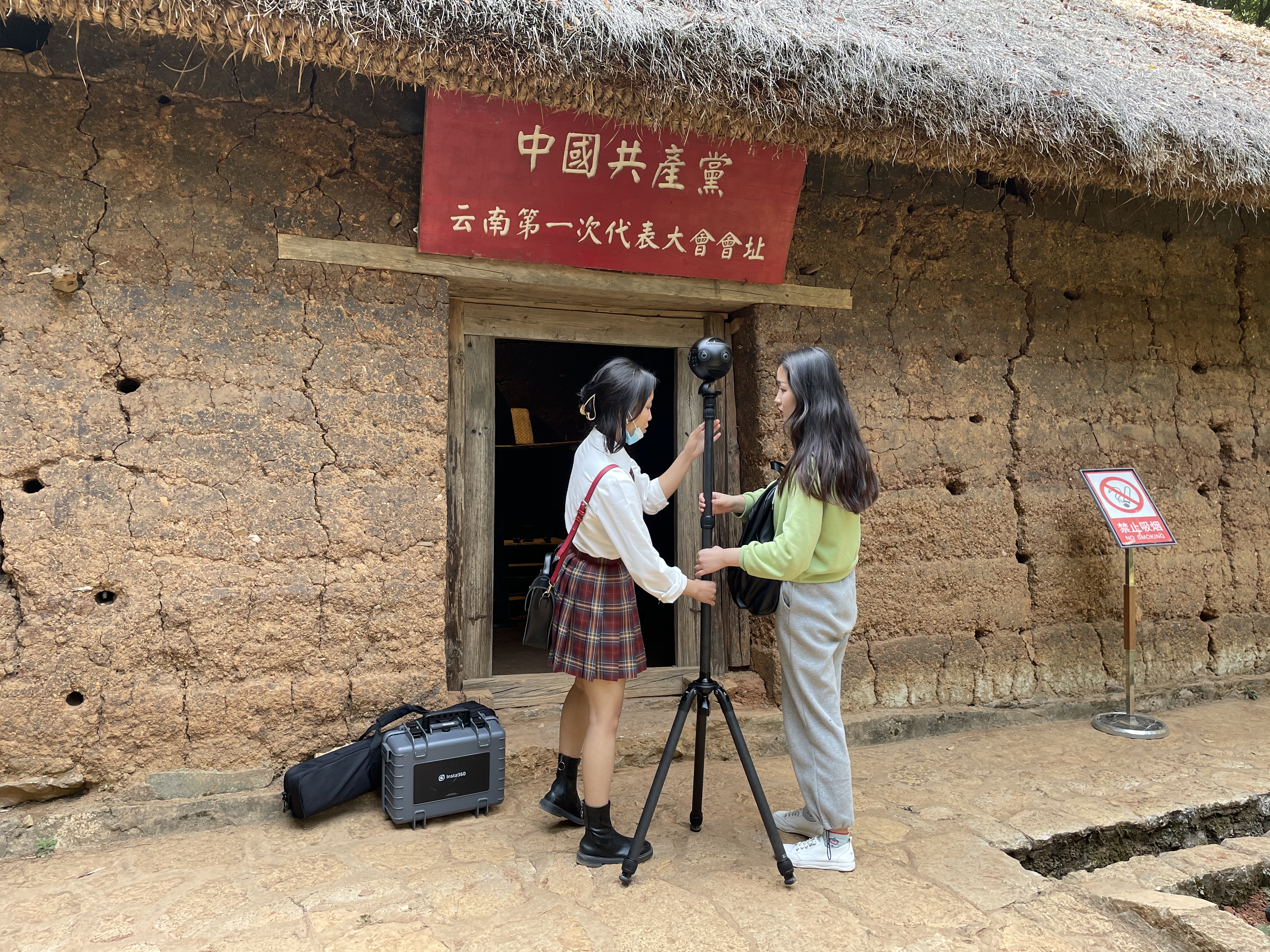 红河学院广播电视学院学生郭云蕾、唐婉君正扛着VR拍摄设备,在查尼皮完成毕业设计:红色圣火燃烧的地方——查尼皮。