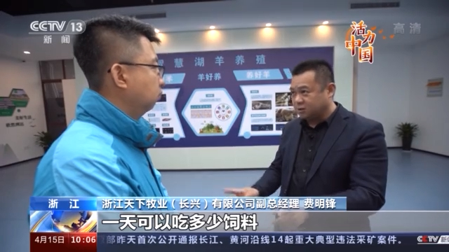 浙江天下牧业(长兴)有限公司副总经理 费明锋: 我们现在的话,可以精准饲喂到多少粗料,多少精料,它的蛋白、粗纤维含多少,我们可以精准到一只羊一天可以吃多少饲料,可以长多少肉。