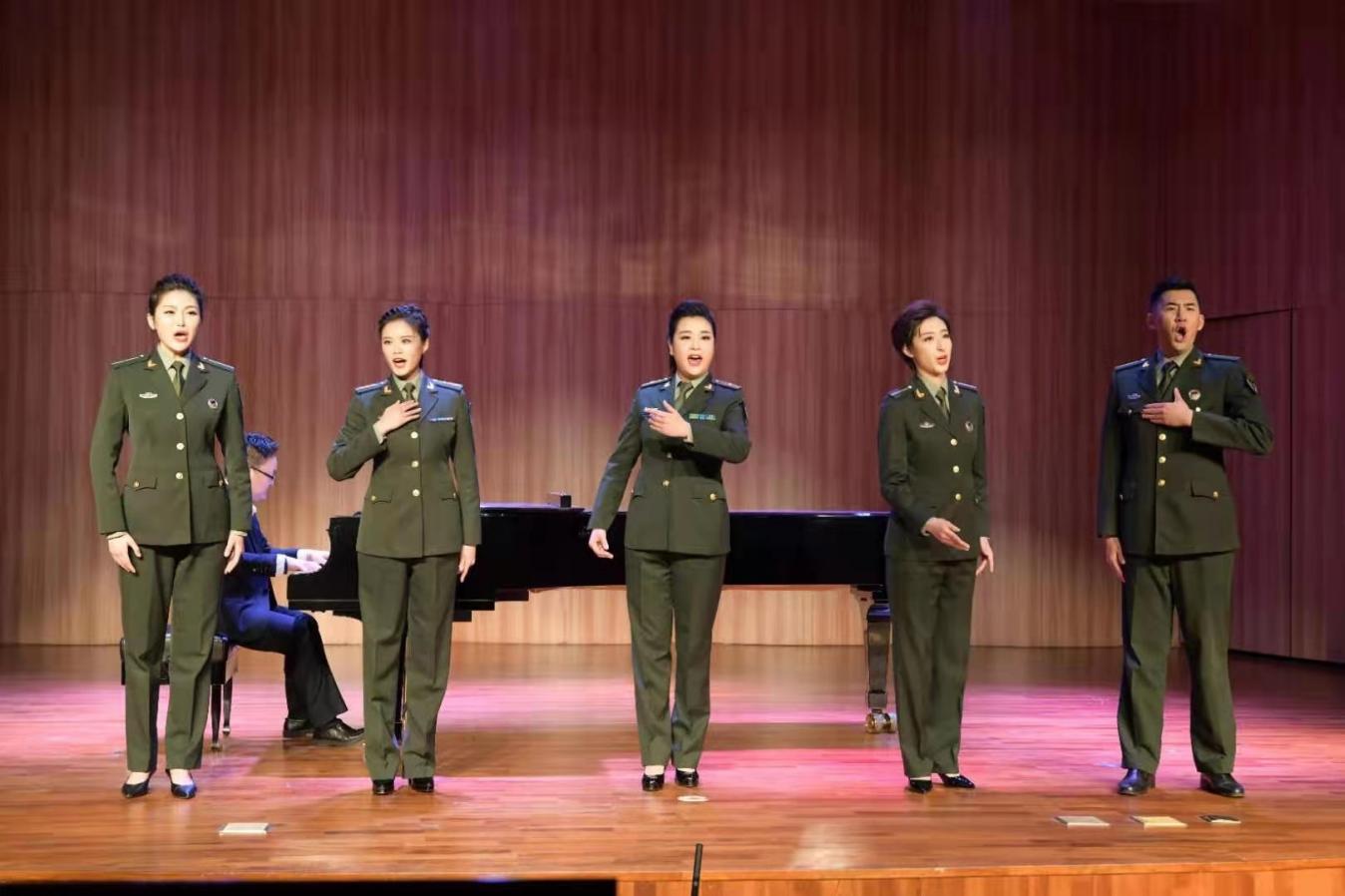 学生进行舞台表演实践展示是检验声乐教学成果的最佳方式。舞台上,5位声乐表演专业研究生轮番登场,通过独唱、重唱、小合唱等声乐表演形式,演唱了民歌、艺术歌曲、军旅歌曲、中外歌剧选段等22首风格不同的声乐作品。“舞台实践突破口传心授的传统教学模式,让学员在轻松愉悦的氛围中进行技艺的切磋交流。”军旅音乐表演教研室主任梁召今说。