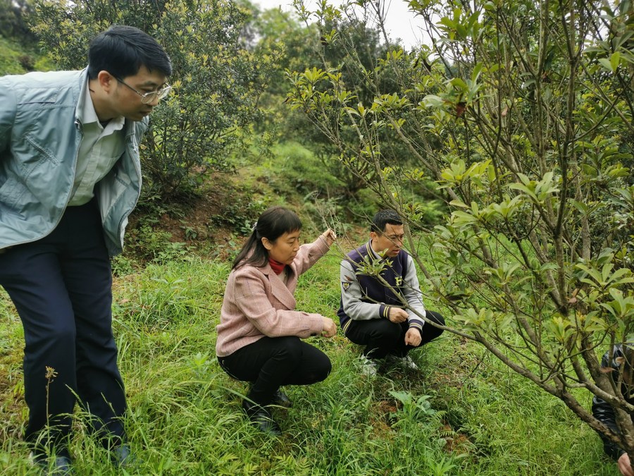 4月12日,南京农业大学教授高志红在麻江县河山村指导杨梅产业技术。(南农驻麻江工作队供图)