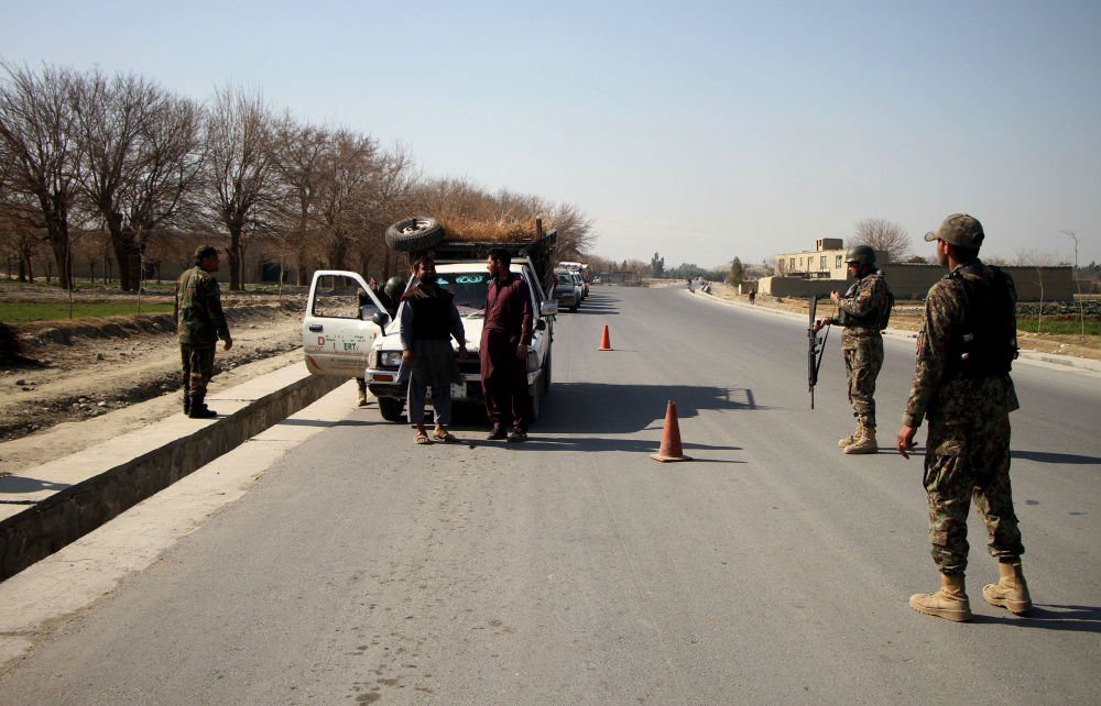 2020年2月9日,在阿富汗楠格哈尔省希尔扎德地区附近一处检查站,阿富汗士兵检查过往车辆。新华社发(赛义夫拉摄)