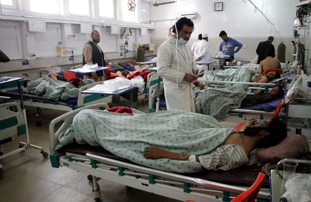 4月7日,袭击事件中的伤者在阿富汗贾拉拉巴德的一家医院接受治疗。新华社发(塞夫拉赫曼·萨菲摄)