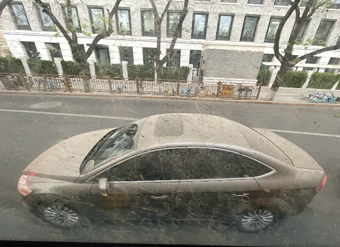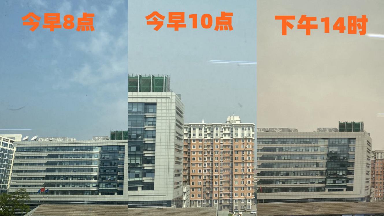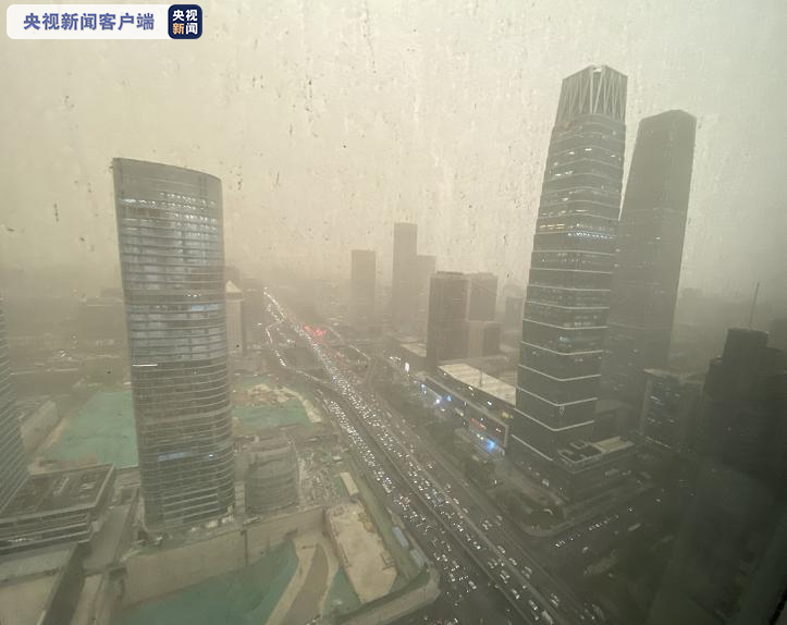 △4月15日15时30分,海淀区中关村东路,沙尘天气影响交通。