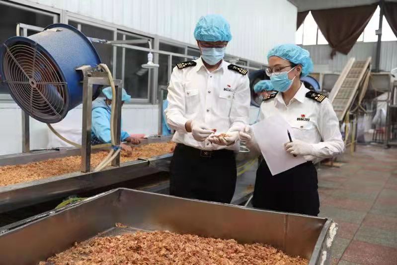昆明海关关员检查脱水蔬菜相关情况。(昆明海关供图)