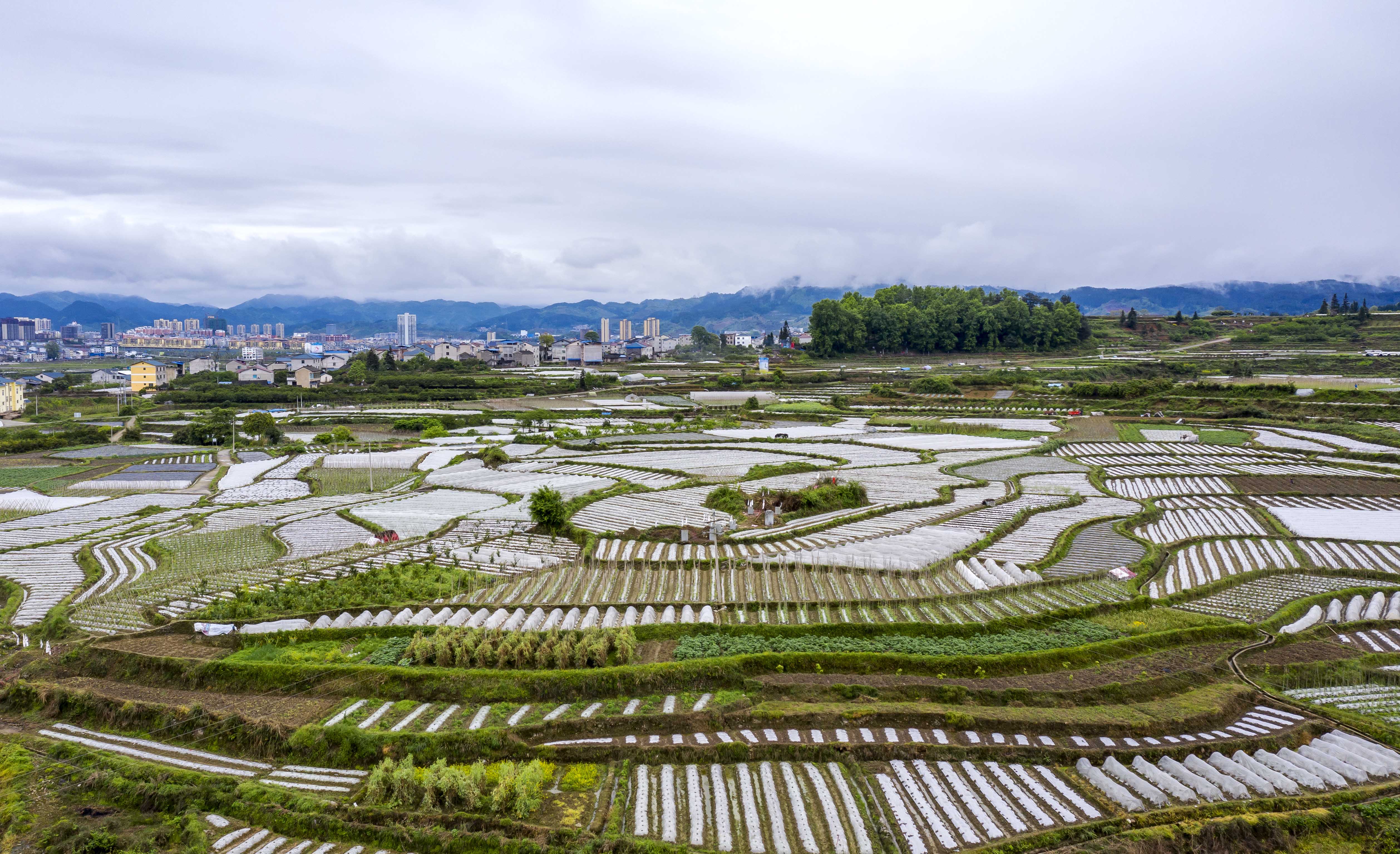 4月11日拍摄的贵州省遵义市余庆县白泥镇团结村现代农业蔬菜种植示范坝区(无人机照片)。新华社发(范晖 摄)