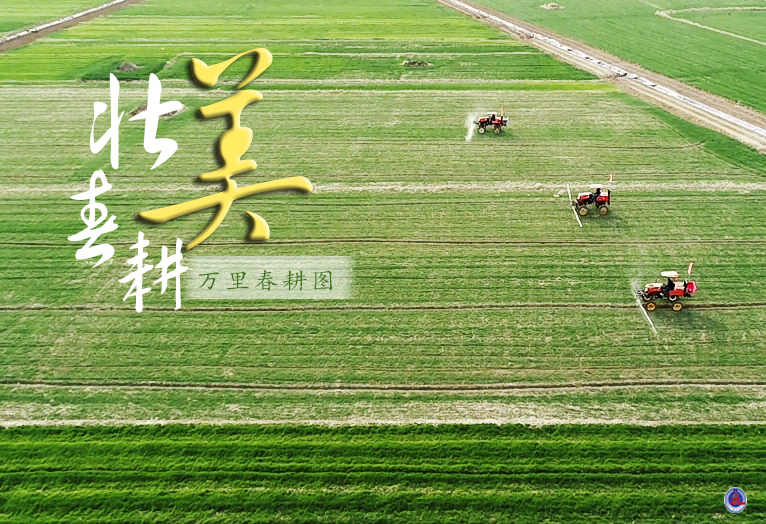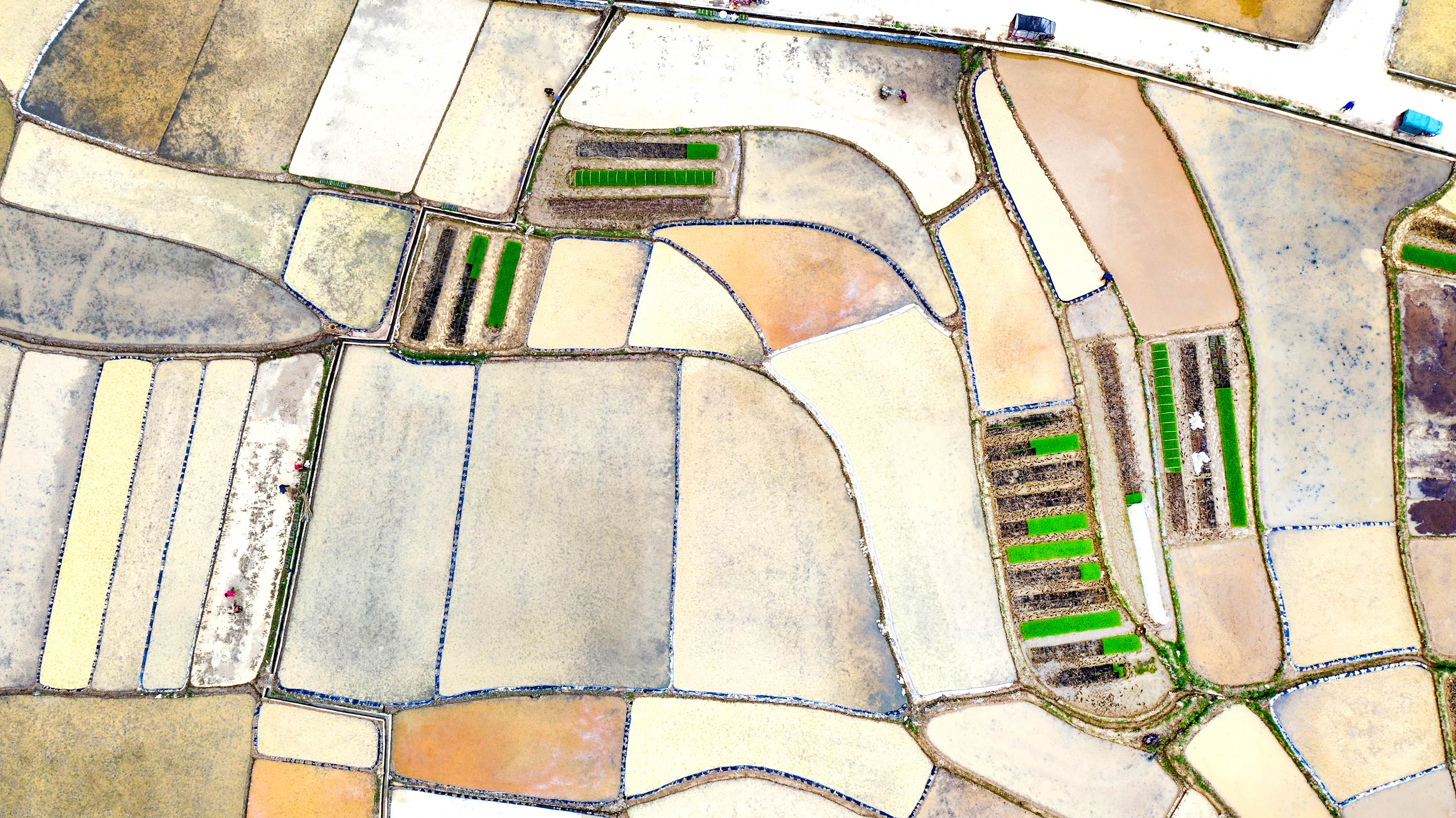 新疆喀什地区巴楚县农民在使用机械犁地(3月28日摄,无人机照片)。新华社记者 马锴 摄