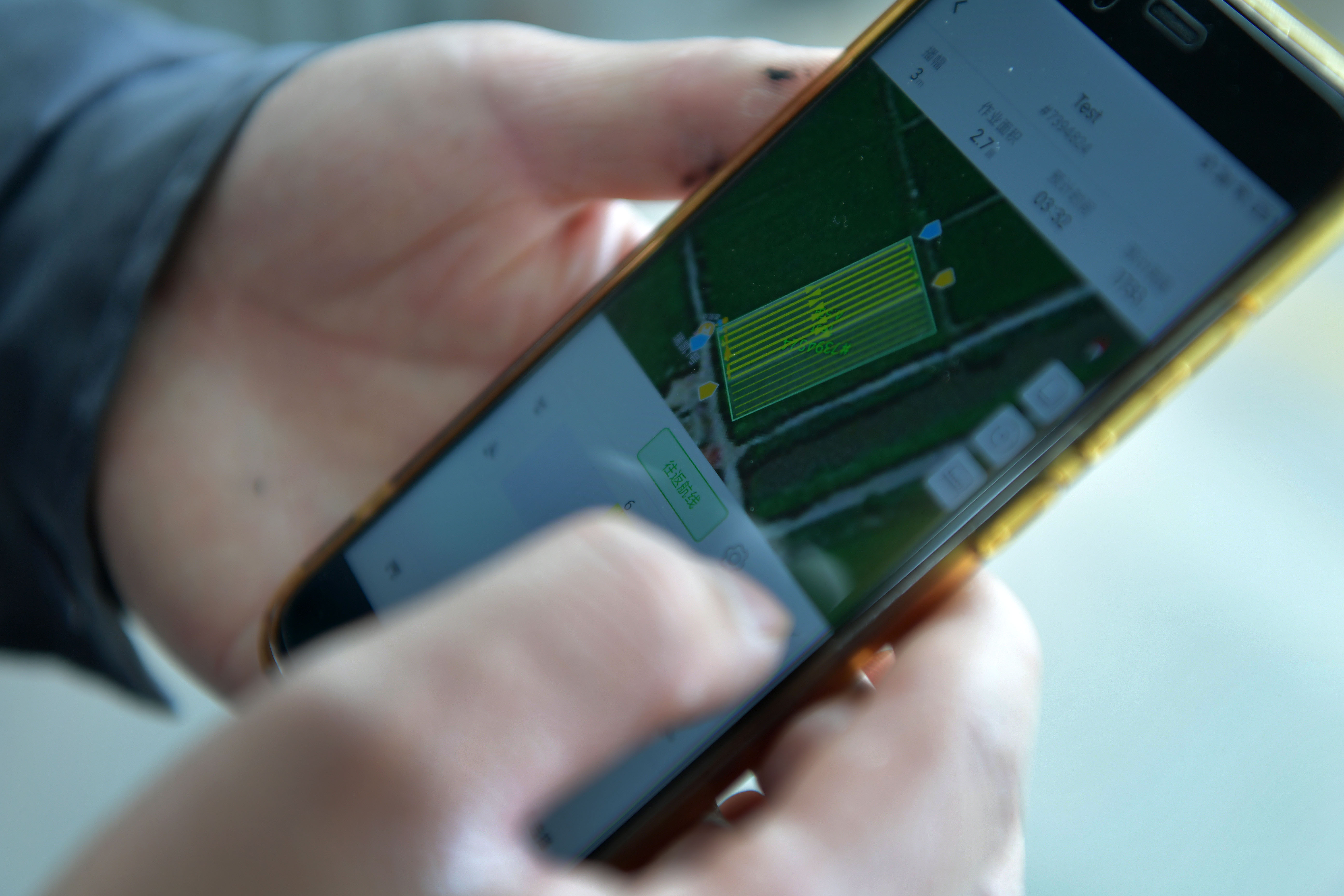 在江西省南昌县蒋巷镇大田农社万亩农场,工作人员在查看播种作业的农田面积(3月12日摄)。新华社记者 彭昭之 摄