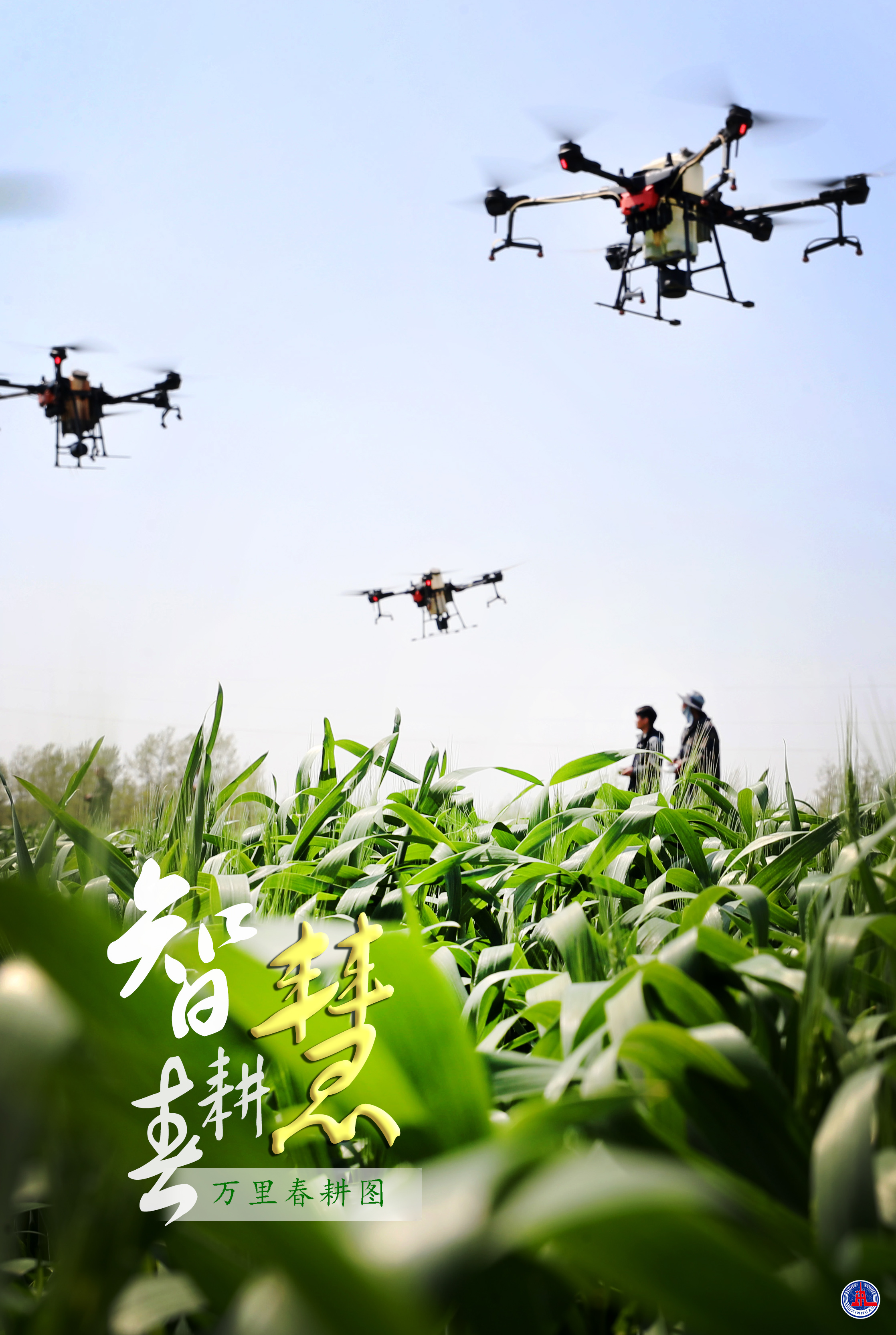 2月23日,在安徽省五河县临北回族乡段庄村,农民驾驶农业机械在麦田喷洒农药(无人机照片)。新华社记者 曹力 黄臻 编制