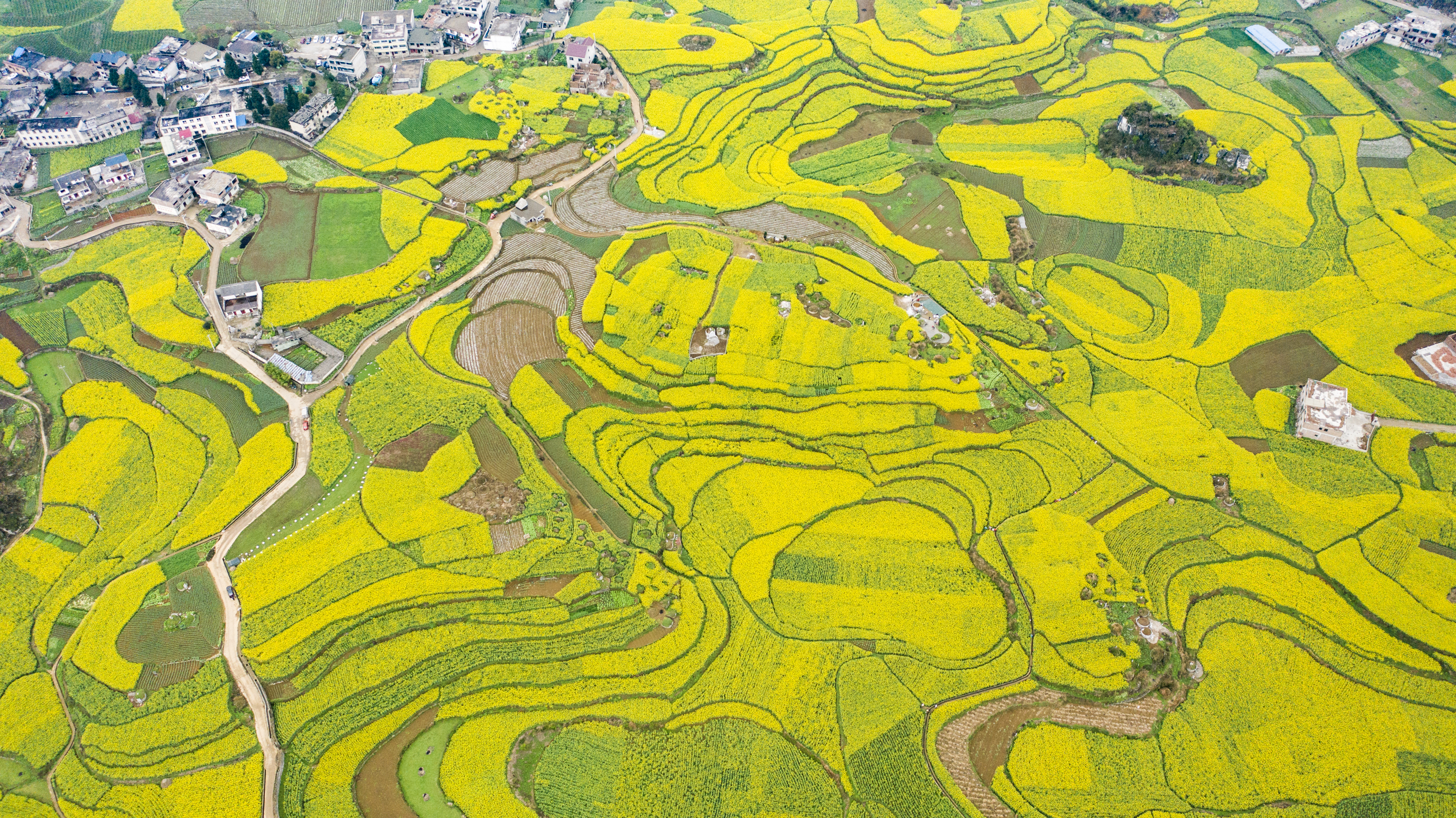 这是贵州省六盘水市六枝特区木岗镇的油菜花田(3月5日摄,无人机照片)。新华社记者 陶亮 摄