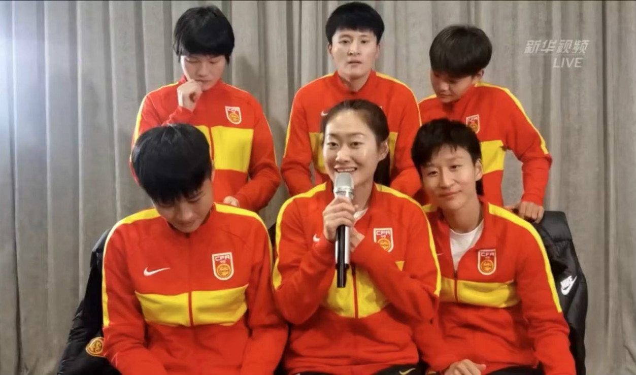 中国女足部分队员在直播节目中(视频截图)